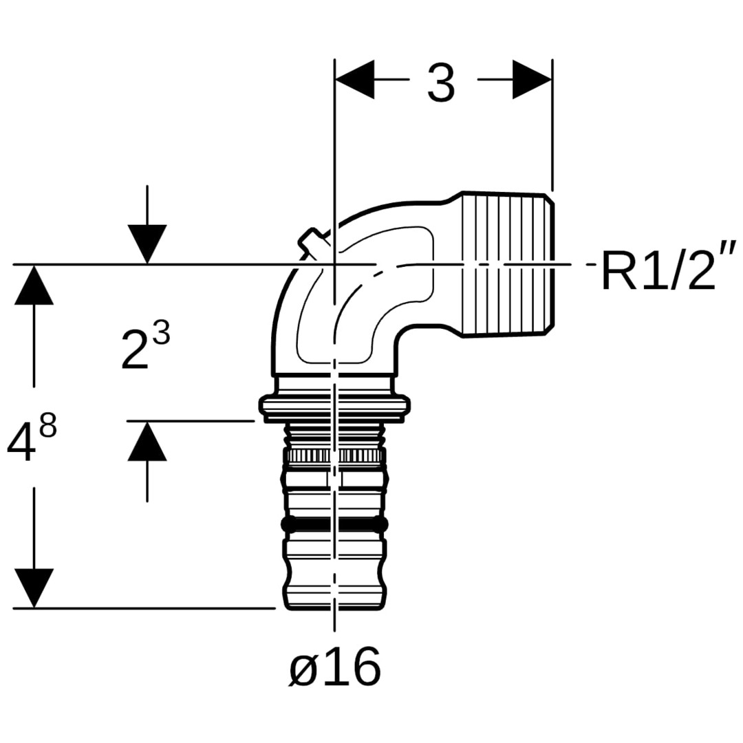 Geberit Übergangsbogen Mepla Ø 16 mm x R 1/2, 90Grad, mit Außengewinde, Rotguss