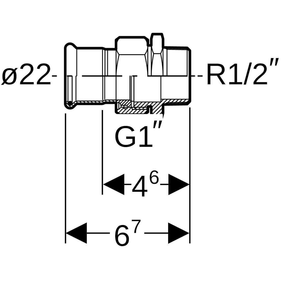 Geberit Übergangsverchraubung Mapress Ø 22 mm x R 1/2, Kupfer, flachdichtend, mit Außengewinde, Rotguss