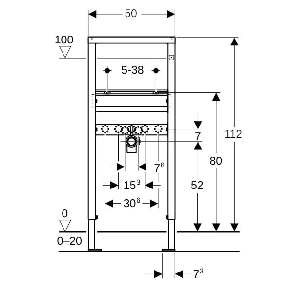 Geberit Waschtisch-Element Duofix Basic BH 112 cm, separate Traverse, für Standarmatur, für Trockenbau