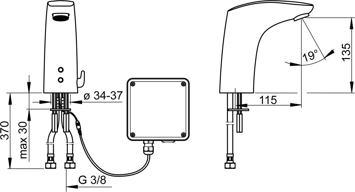 HA Waschtischbatterie HANSAELECTRA 6443 9/12 V, separater Transformator, Bluetooth Ausladung 112 mm DN15 Chrom