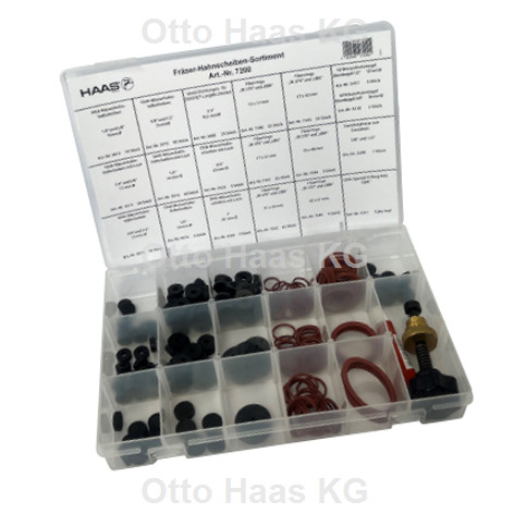 bestehend aus: 1x Ventilsitzfräser mit Einsätzen 3/8" u. 1/2", 5x Gummi-Wasserhahnkegeln Domkegel 1/2" 17 mm, 20x OHA-Qualitäts-Wasserhahnscheiben mit Loch, 1/4" + 3/8" 13 mm, 30x OHA-Qualitäts-Wasserhahnscheiben mit Loch 3/8" u. 1/2" 15 mm, 20x OHA-Qualitäts-Wasserhahnscheiben mit Loch 1/2" 16 mm, 5x OHA-Qualitäts-Wasserhahnscheiben mit Loch 3/4" 23 mm, 3x OHA-Qualitäts-Wasserhahnscheiben mit Loch 1" 28 mm, 10x OHA-Qualitäts-Wasserhahn-Vollscheiben 1/4" u. 3/8" 13 mm, 10x OHA-Qualitäts-Wasserhahn-Vollscheiben 3/8" u. 1/2" 15 mm, 5x OHA-Qualitäts-Wasserhahn-Vollscheiben 1/2" 16 mm, 25x Ventil-Dichtungen passend für GROHE-Longlife Oberteil 16,5 mm, 25x Fiberringe für Trinkwasser "W270" und "UBA" 13 x 17 mm, 25x Fiberringe für Trinkwasser "W270" und "UBA" 17 x 21 mm, 25x Fiberringe für Trinkwasser "W270" und "UBA" 21 x 25 mm, 25x Fiberringe für Trinkwasser "W270" und "UBA" 27 x 33 mm, 5x Fiberringe für Trinkwasser "W270" und "UBA" 33 x 40 mm, 5x Fiberringe für Trinkwasser "W270" und "UBA" 42 x 51 mm, 1x OHA-Spezial-O-Ring-Fett Tube 7 ml, 5x Gummi- Wasserhahnkegel 3/8"