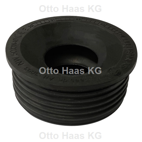 für Anschluss von Metall- und Kunststoffrohren z.B. Siphonrohre, passend für HTSW und HT-Siphonwinkel, der Außendurchmesser ist maßgebend für Muffen, Material Gummi EPDM, alterungs- und witterungsbeständig nach DIN EN 681-1