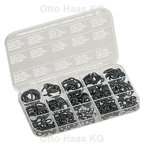 HAAS O-Ring-Sortiment 300 Stück, klein, 180x105x16mm, in PP-Box transparent