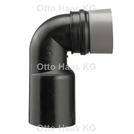 schwarz, zum Verschweißen mit PE-Rohr oder zum Einstecken in ein anderes Abflussrohr, mit Doppellippendichtung, Temperaturwechseltest bis 95 °C, Bogen Polyethylen HD verschweißbar, Gummi EPDM alterungs- und witterungsbeständig nach DIN EN 681-1