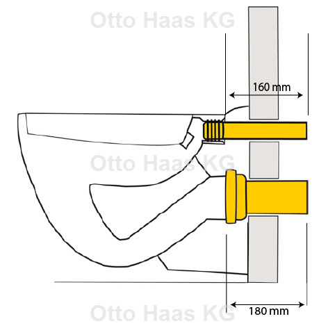 HAAS PE-Wand-WC-Anschlussgarnitur DN 110/110, Abdeckkappen chrom, 180mm, mit eingepresster Dichtung, schwarz HS3292