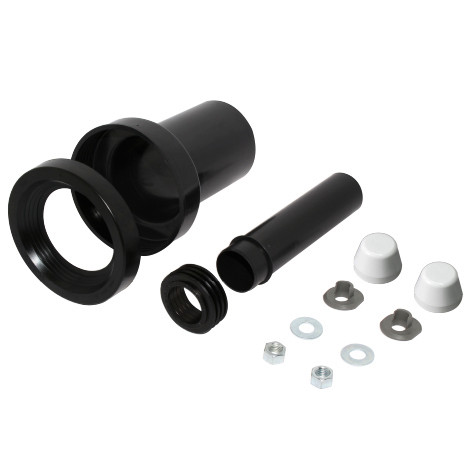 für wandhängende WC´s mit Einlaufstutzen 55 mm Innendurchmesser, Einschubhöhe 135 mm, geprüft nach DIN 1389, Dichtungen aus EPDM alterungs- und witterungsbeständig nach DIN EN 681-1, bestehend aus: Spülrohrverbinder 45 x 185 mm und Gummilippendichtung und WC-Anschlussstutzen mit Gummistülpdichtung, Abdeckkappen, Exzenterscheiben, Unterlegscheiben, Muttern M 12 und Montageanleitung