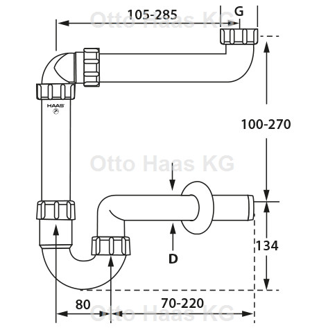 mit Ablaufrohr 240 mm lang und höhenverstellbarem Tauchrohr, komplett mit allen Dichtungen und Rosette, sowohl für Waschtische als auch für Spülen verwendbar, mit Übergangs-/Reduzierstück von DN 40 auf DN 32 1 1/2" AG auf 1 1/4" IG, einzeln im Polybeutel verpackt, mit Montageanleitung, nach DIN EN 274