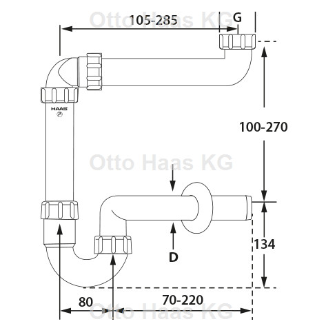 HAAS Raumsparsiphon DN 50, 1 1/4 bzw. 1 1/2", Polypropylen, weiß