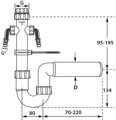 HAAS Röhren-Siphon OHA DN 56, 1 1/2", 2 Geräteanschlüsse, Rückstausicherung, weiß HS4781