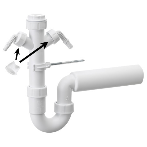 in anspruchsvollem Design, aus schlagfestem Polypropylen. Ideal zur gleichzeitigen Kondensatableitung, in beiden Geräteanschlüssen sind Rückstausicherungen eingebaut, oben geschlossen, mit 2 Geräteanschlüssen, komplett mit Wandhalterung, Dichtungen und Rosette, nach DIN EN 274