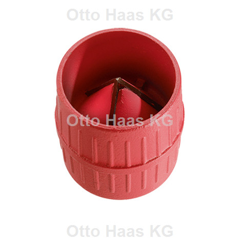 für Kunststoff-, Guss- und Buntmetallrohre 6-40 mm Durchmesser mit 3 Edelstahlklingen im Zinkdruckgussgehäuse, für Innen- und Aussenentgratung, einzeln im Polybeutel verpackt