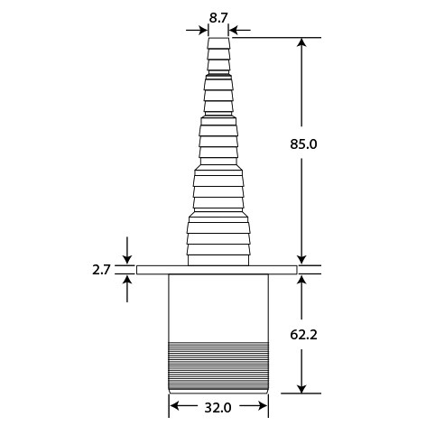 aus schlagfestem Polypropylen, abriebfest, durch kürzen des Schlauchstutzens ist der Verbinder geeignet für metrische und imperiale Schlauchabmessungen von 8,2-26,5 mm, durch die vorhandenen Raster wird ein Herausrutschen des Anschlusses erschwert, Temperaturbereich von 0-90 °C und Temperaturbeständigkeit kurzzeitig bis 90 °C, max. Überdruck 0,5 bar, passend für Schläuche mit Innendurchmesser 8,2-26,5 mm