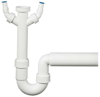 HAAS Spülensiphon DN 40, 1 1/2", mit 2 Geräteanschlüssen 3/4" und 1", Polypropylen, weiß