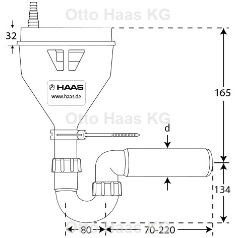 HAAS Trichter-Siphon OHA Multitri für Leckwasser, Polypropylen, DIN EN 1717, mit Befestigung