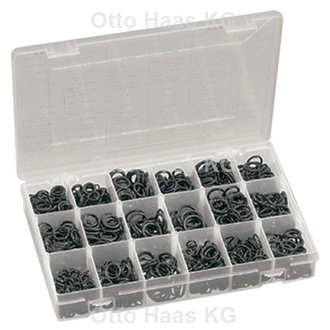 in PP-Box transparent, für Sanitär-Armaturen, bestehend aus: 70x Gummi-O-Ringe 110 x 2,50 mm, 50x Gummi-O-Ringe 60 x 20 mm, 100x Gummi-O-Ringe 13,80 x 20 mm, 100x Gummi-O-Ringe 7,20 x 2,20 mm, 50x Gummi-O-Ringe 6,20 x 10 mm, 90x Gummi-O-Ringe 6,50 x 1,20 mm, 50x Gummi-O-Ringe 90 x 30 mm, 200x Gummi-O-Ringe 7,90 x 2,50 mm, 30x Gummi-O-Ringe 13,50 x 2,75 mm, 100x Gummi-O-Ringe 7,50 x 1,80 mm, 30x Gummi-O-Ringe 135 x 2,60 mm, 50x Gummi-O-Ringe 100 x 20 mm, 50x Gummi-O-Ringe 13,60 x 2,70 mm, 30x Gummi-O-Ringe 8,70 x 30 mm, 10x Gummi-O-Ringe 280 x 40 mm, 50x Gummi-O-Ringe 16,90 x 2,70 mm, 50x Gummi-O-Ringe 80 x 2,50 mm, 30x Gummi-O-Ringe 13,95 x 2,62 mm, 30x Gummi-O-Ringe 13,40 x 2,70 mm, 10x Gummi-O-Ringe 330 x 30 mm, 50x Gummi-O-Ringe 140 x 2,50 mm, 50x Gummi-O-Ringe 70 x 20 mm, 50x Gummi-O-Ringe 60 x 1,80 mm, 40x Gummi-O-Ringe 180 x 2,50 mm, 30x Gummi-O-Ringe 160 x 2,50 mm, 50x Gummi-O-Ringe 17,50 x 20 mm, 50x Gummi-O-Ringe 7,50 x 20 mm, 100x Gummi-O-Ringe 60 x 1,50 mm, 30x Gummi-O-Ringe 140 x 20 mm, 50x Gummi-O-Ringe 120 x 30 mm, 30x Gummi-O-Ringe 80 x 20 mm, 50x Gummi-O-Ringe 7,80 x 20 mm, 20x Gummi-O-Ringe 18,70 x 30 mm