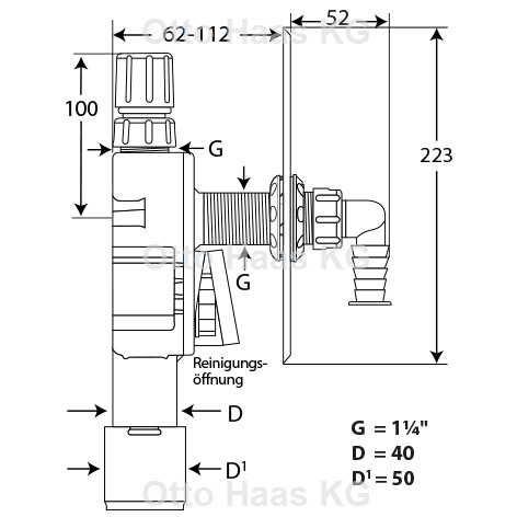 | Rohraußendurchmesser Abflussrohr | 50 mm |