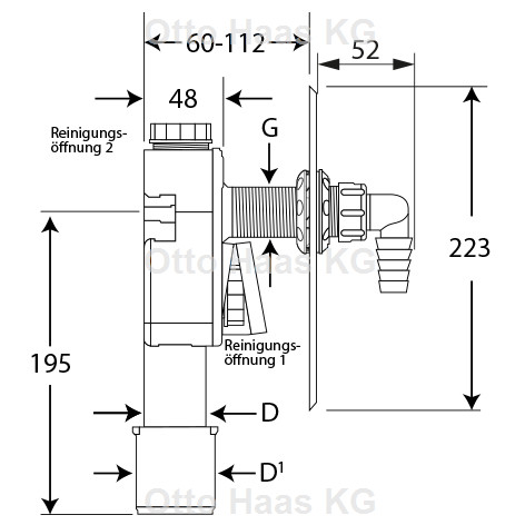 HAAS Unterputz-Geräte-Siphon OHA DN 40/50, mit 2 Reinigungsöffnungen, Ablaufrutsche, schwarz