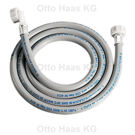 für Wasch- und Spülmaschinen, eine Seite mit gerader Kunststoff-Verschraubung 3/4", andere Seite mit Winkel-Kunststoff-Verschraubung 3/4", fertig montiert, mit 2 Dichtungen, Platzdruck 60 bar nach DIN EN 61770, geeignet für Betriebsdruck bis max. 20 bar bei 20 °C, geeignet für Temperaturbereich bis 25 °C