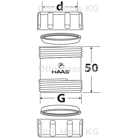 HAAS Zwischenstück DN 40, 1 1/2" x 1 1/2", Polypropylen, weiß