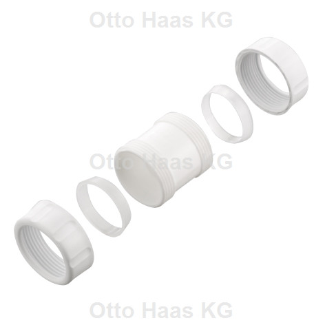 zur Verbindung von Siphonrohren DN 40, als Verlängerung oder G 1 1/2-kompatibel, bestehend aus: 1x Zwischenstück DN 40, 2x Keilplastringen und 2x Überwurfmuttern, nach DIN EN 274