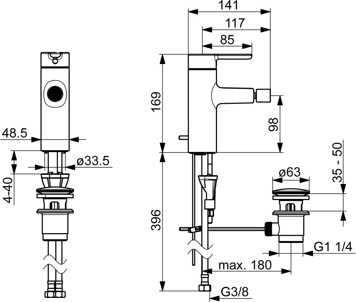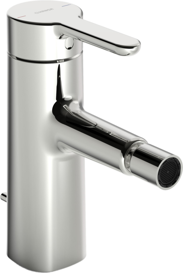 HANSA Bidet-Einhebelmischer HANSADESIGNO Style Hebel oben, mit Zugstangen-Ablaufgarnitur, Ausladung 117mm, chrom