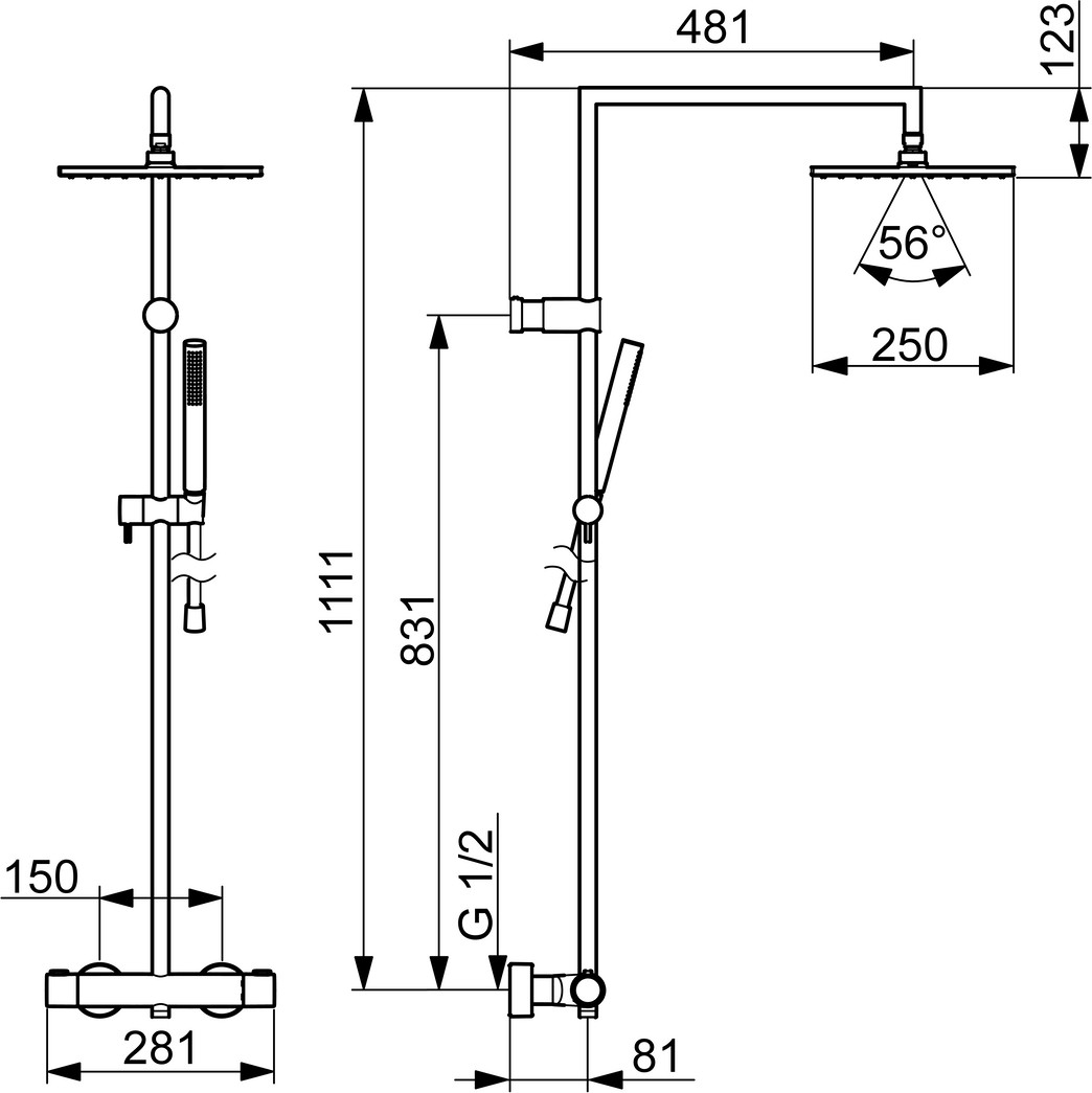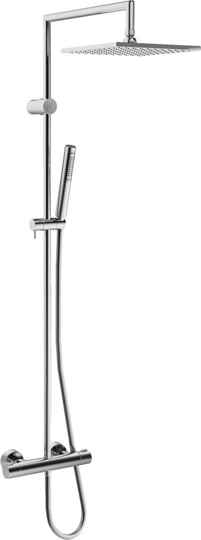 DN 15, Durchflussmenge 13,2, Durchfluss (Durchflussbegrenzer) 12 l/min, gemessen bei 3 bar Fließdruck, Heißwasserversorgung max. 80 °C, Drehumsteller, druckunabhängig, integrierter Umsteller mit Absperrung, Armaturenkörper aus entzinkungsbeständigem Messing (DZR), thermische Desinfektion nach DVGW W 551, ohne erneute Regelteil Einjustierung möglich, eigensicher gegen Rückfließen im häuslichen Gebrauch (nach DIN EN 1717), Kopfbrause eckig 250 x 250 mm, Handbrause 25 x 70 mm, Brausestange, verstellbare Brausestangehalterung, Brauseschlauch (1750 mm), Temperatureinstellgriff, Durchflusseinstellgriff, Heißwassersperre einstellbar, Sicherheitssperre gegen Verbrühen bei 38 °C, S-Anschlüsse, Abdeckung, Schalldämpfer, Thermostatkartusche zur Temperaturreglung, Rückflussverhinderer, Schmutzfilter