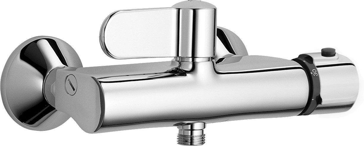 Dusch-Thermostat, Wandmontage DN 15, Heißwasserversorgung max. +80° C, Arbeitsdruck 1 - 10 bar, Durchfluss bei 3 bar: 21 l/min, Anschlussgröße G 1/2" Installationsabstand 150 ± 20 mm, Sicherungseinrichtung (EN1717) EB, Geräuschklasse I (ISO 3822), Material aus Messing, ABP: PA-IX 10127/IA, Armaturenkörper aus entzinkungsbeständigem Messing (DZR), Wasserwege ohne Nickelbeschichtung, thermische Desinfektion nach DVGW W551 ohne erneute Regelteil Einjustierung möglich, Heißwassersperre einstellbar (im Lieferumfang enthalten), Sicherheitssperre gegen Verbrühen bei 38° C, Temperatureinstellgriff, Durchflusseinstellgriff, Sicherheitshebel Thermostatkartusche zur Temperaturreglung, Schmutzfilter, Rückflussverhinderer, eigensicher gegen Rückfließen im häuslichen Gebrauch (nach DIN EN 1717), S-Anschlüsse, mit integrierter Vorabsperrung