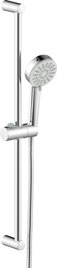DN 15, Heißwasserversorgung max. 65°C, Arbeitsdruck 0,5-5 bar, Durchfluss bei 3 bar 11,4 l/min, Anschlussgröße G1/2, Durchmesser Ø 19 mm, Handbrausengröße Ø 90 mm, Installationsabstand 671 mm, Länge 700 mm, Geräuschklasse I (ISO 3822), Material Verbundwerkstoff, Handbrause, Brausestange, verstellbare Brausestangehalterung, Brauseschlauch (1500 mm), Anti-Kalk-Technik