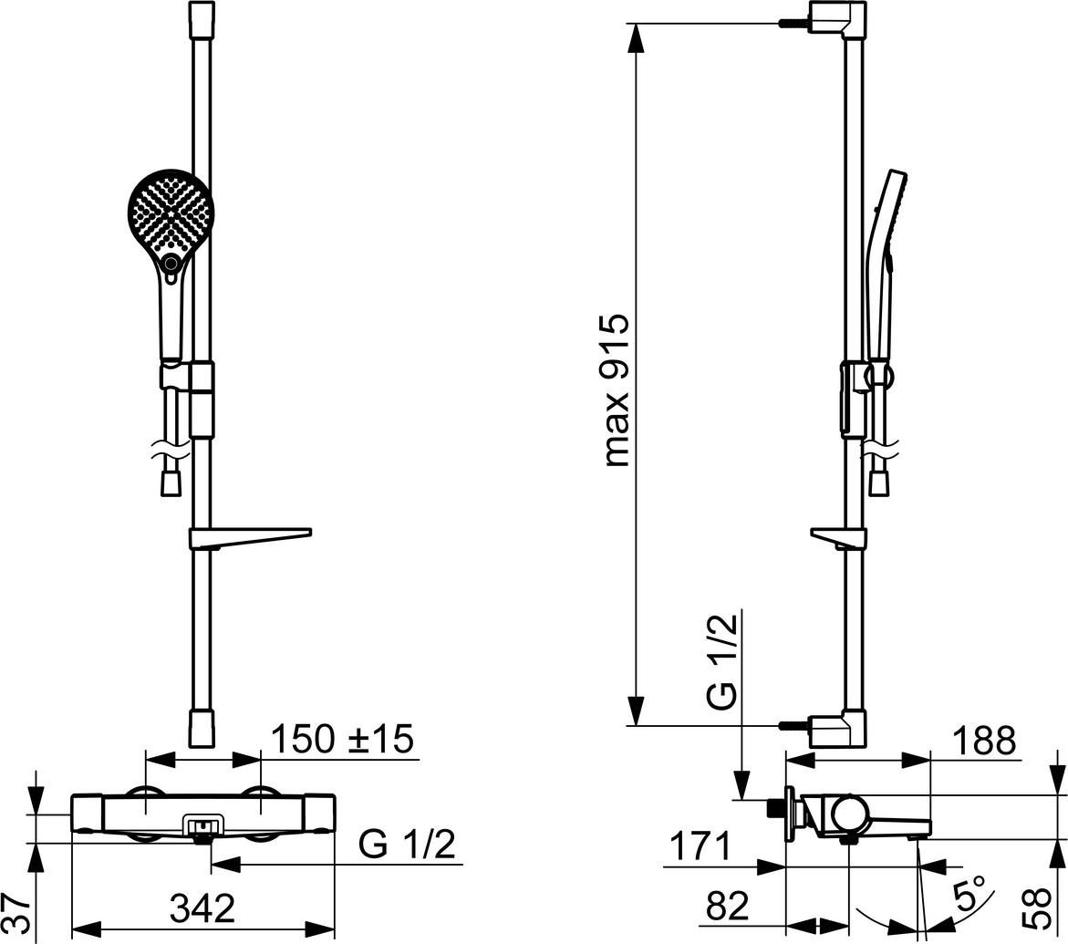 kürzbar, Schlauchdurchführung drehbar, Durchfluss bei 3 bar 13.2 l/min, Spar-Durchfluss bei 3 bar 7.2 l/min, Heißwasserversorgung max. +65°C, Drehumsteller druckunabhängig, integrierter Umsteller mit Absperrung, Handbrause, Brausestange, variable Montagemöglichkeit, verstellbare Brausestangehalterung, Seifenschale, Anti-Kalk-Technik, Brauseschlauch (1750 mm), Twist guard, Verdrehschutz für Brauseschlauch, MagShelf abnehmbare Ablage mit magnetischer Befestigung, Handbrausengröße Ø110 mm, 3-strahlig normal, gleichmäßiger und weicher Wasserstrahl, Massage starker Wasserstrahl durch drehbare Sprühdüsen, Regenstrahl gleichmäßiger und starker Wasserstrahl, Temperatureinstellgriff, Durchflusseinstellgriff, Hebel mit W+K-Kennzeichnung, Easy-Grip Bedienhebel, Eco-Funktion für die Wassermenge, Sicherheitssperre gegen Verbrühen bei 38°C, THERMO COOL mehr Sicherheit durch minimales Erwärmen des Armaturengehäuses, S-Anschlüsse Abdeckung(en), Schalldämpfer, (G3/4), Sicherungseinrichtung (EN1717) EB, Oberteil mit keramischen Dichtscheiben zur Wassermengeneinstellung für einen Abgang, Thermostatkartusche zur Temperaturreglung, Rückflussverhinderer, Schmutzfilter, feststehender Auslauf, Strahlreglertyp CASCADE Strahlregler, schwenkbar