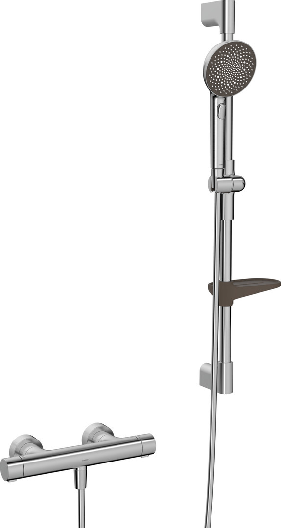 Heißwasserversorgung max. 65°C, Arbeitsdruck 1-10 bar, Spar-Durchfluss bei 3 bar 10,2 l/min, Durchfluss bei 3 bar 10,8 l/min, Anschlussgröße G1/2, Handbrausengröße Ø 110 mm, Installationsabstand 150 ± 15 mm, Länge (mm) 770 mm, Sicherungseinrichtung (EN1717) EB, Geräuschklasse I (ISO 3822), Material Messing/Verbundwerkstoff, Handbrause, Brausestange, verstellbare Brausestangehalterung, Seifenschale, Brauseschlauch (1750 mm), variable Montagemöglichkeit, Anti-Kalk-Technik, Twist guard, Verdrehschutz für Brauseschlauch, S-Anschlüsse, Abdeckung(en), Schalldämpfer, Oberteil mit keramischen Dichtscheiben zur Wassermengeneinstellung für einen Abgang, Thermostatkartusche zur Temperaturreglung, Rückfussverhinderer, Schmutzflter, Armaturenkörper aus entzinkungsbeständigem Messing (DZR), kürzbar, Schlauchdurchführung, drehbar, Sicherheitssperre gegen Verbrühen bei 38°C, mehr Sicherheit durch minimales Erwärmen des Armaturengehäuses Temperatureinstellgriff, Durchfusseinstellgriff, Hebel mit W+K-Kennzeichnung, Eco-Funktion für die Wassermenge, 3-strahlig