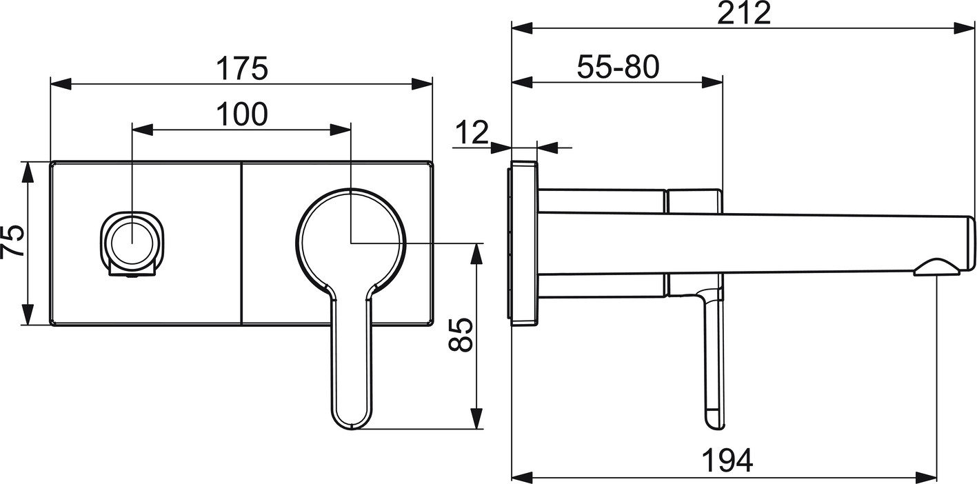 HANSA Fertigmontageset HANSADESIGNO Style 2-Loch-Waschtisch-Einhebelmischer, Wandmontage, Ausladung 194mm, chrom