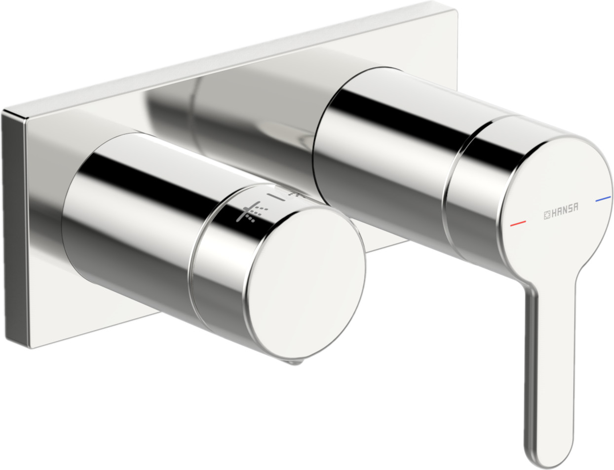 Wandmontage, passend zu HANSAMATRIX Einbaukörper, Heißwasserversorgung max. 80°C, Arbeitsdruck 0,5-10 bar, Durchfluss bei 3 bar 16,8 / 12 l/min, Geräuschklasse II (ISO 3822), Material Messing, Hebel mit W+K-Kennzeichnung, Einhandbedienhebel/Griff, Durchfusseinstellgriff, mit 2-Wege-Umstellung, Rosette eckig, Hülse