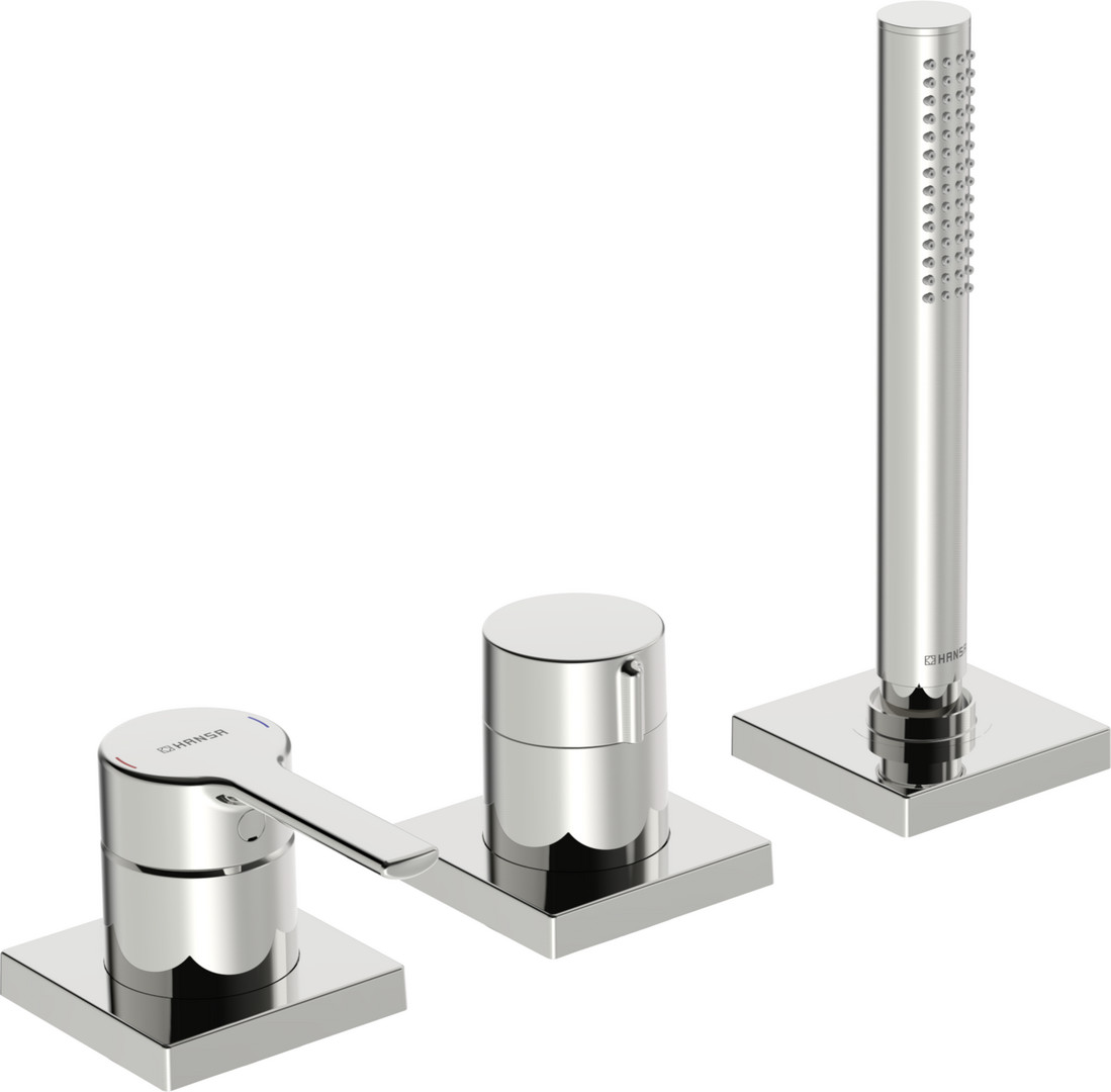 HANSA Fertigmontageset HANSARONDA 3-Loch-Wannen-Einhebelmischer, Rosette eckig, chrom