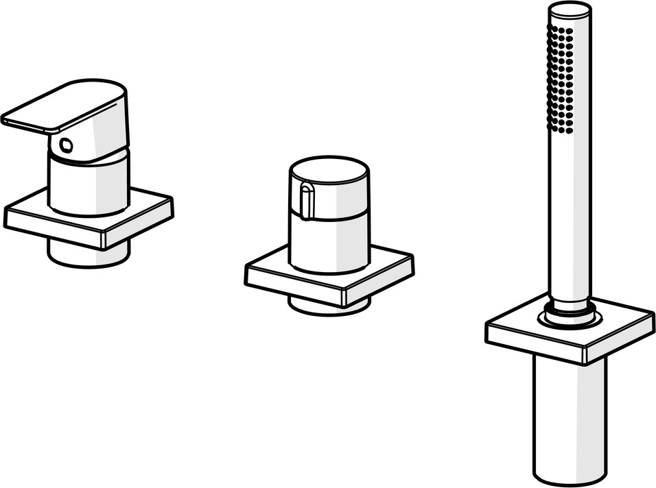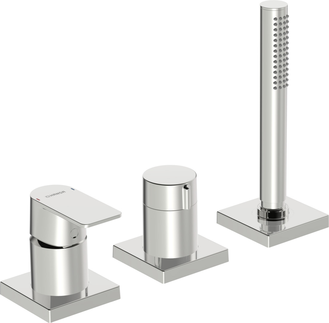 HANSA Fertigmontageset HANSASTELA 3-Loch-Wannen- und Brause-Einhebelmischer, Drehumsteller, Rosette eckig, chrom