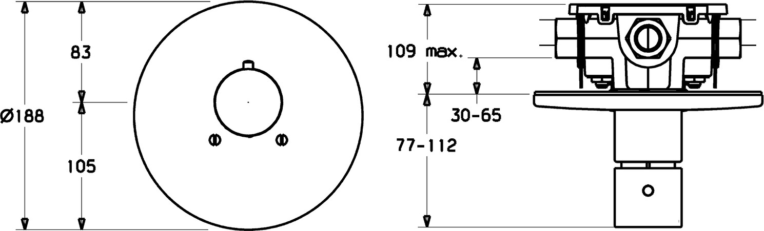passend zu HANSAVARIO-Einbaukörper, DN 20, Heißwasserversorgung max. 80 °C, Temperatureinstellgriff, Sicherheitssperre gegen Verbrühen bei 38 °C, Thermostatkartusche zur Temperaturregelung, Rosette mit Schrauben, Hülse, ohne Mengenregulierung und Umstellung