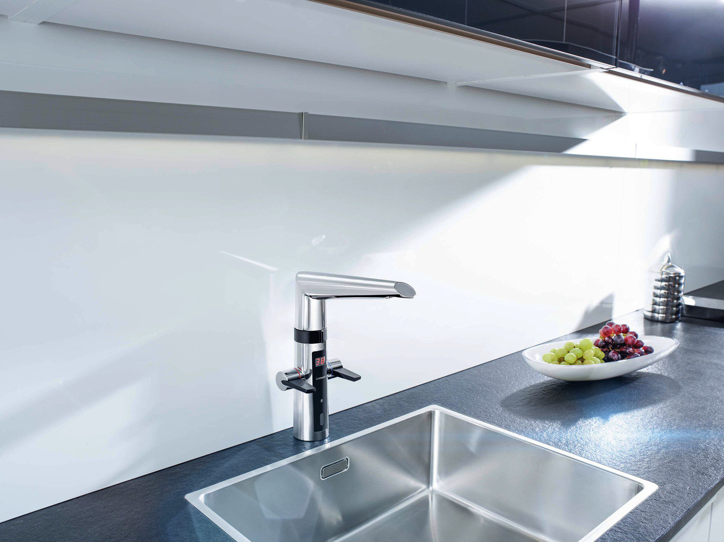 HANSA Infrarot-Spültisch-Armatur HANSAFIT Hybrid, Netzbetrieb, Easy-Grip Hebel, schwenkbar, Ausladung 193mm, chrom
