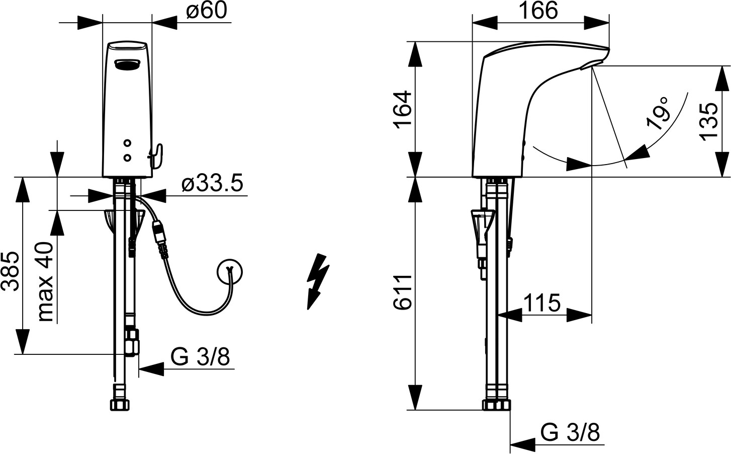 HANSA Infrarot-Waschtisch-Armatur HANSAELECTRA ND, Netzbetrieb, ohne Ablaufgarnitur, Ausladung 112mm, chrom