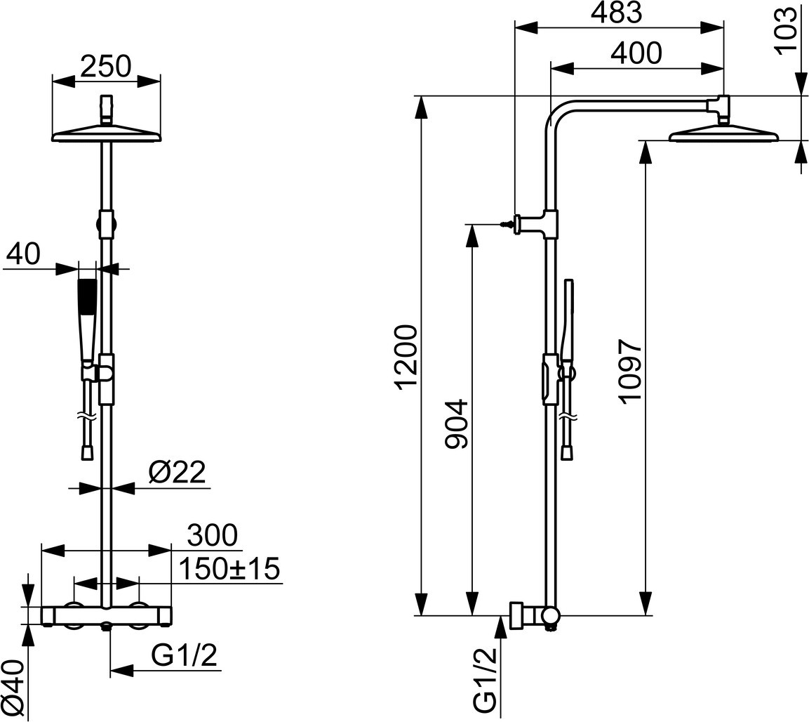 Heißwasserversorgung max. 65°C, Arbeitsdruck 1-10 bar, Spar-Durchfuss bei 3 bar 7,2 l/min, Durchfluss bei 3 bar 7,8 l/min, Anschlussgröße G1/2, Kopfbrausengröße 250 x 250 mm, Handbrausengröße 30 x 75 mm, Installationsabstand 150 ± 15 mm, Sicherungseinrichtung (EN1717) EB, Geräuschklasse I (ISO 3822), Material Messing/Verbundwerkstoff, Handbrause, Schwenkbare Kopfbrause, in Mittelstellung arretierbar, Schwenkbares Kugelgelenk, Brausestange, variable Montagemöglichkeit, verstellbare Brausestangehalterung, Anti-Kalk-Technik, Brauseschlauch (1750 mm), Twist guard, Verdrehschutz für Brauseschlauch, Sicherheitssperre gegen Verbrühen bei 38°C, mehr Sicherheit durch minimales Erwärmen des Armaturengehäuses Drehumsteller, druckunabhängig, integrierter Umsteller mit Absperrung, direkter Anschluss, Innengewinde, Abdeckung(en), Temperatureinstellgriff, Durchfusseinstellgriff, Hebel mit W+K-Kennzeichnung, Eco-Funktion für die Wassermenge, Thermostatkartusche zur Temperaturreglung, Rückfussverhinderer, Schmutzflter, kürzbar, Schlauchdurchführung, drehbar, 1-strahlig