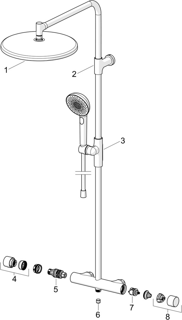 Heißwasserversorgung max. 65°C, Arbeitsdruck 1-10 bar, Spar-Durchfluss bei 3 bar 9,6 l/min, Durchfluss bei 3 bar 12,2 l/min, Anschlussgröße G1/2, Kopfbrausengröße Ø 300 mm, Handbrausengröße Ø 110 mm, Installationsabstand 150 ± 15 mm, Sicherungseinrichtung (EN1717) EB, Geräuschklasse I (ISO 3822), Material Messing/Verbundwerkstoff, Handbrause, Brausestange, Schwenkbare Kopfbrause, in Mittelstellung arretierbar, verstellbare Brausestangehalterung, Brauseschlauch (1750 mm), variable Montagemöglichkeit, schwenkbares Kugelgelenk, Anti-Kalk Technik, Twist guard, Verdrehschutz für Brauseschlauch, 3-strahlig, Oberteil mit keramischen Dichtscheiben zur Wassermengeneinstellung für einen Abgang, Thermostatkartusche zur Temperaturreglung, Rückfussverhinderer, Schmutzflter, Drehumsteller, druckunabhängig, integrierter Umsteller mit Absperrung, kürzbar, Schlauchdurchführung, drehbar, Sicherheitssperre gegen Verbrühen bei 38°C, mehr Sicherheit durch minimales Erwärmen des Armaturengehäuses, Temperatureinstellgriff, Durchfusseinstellgriff, Hebel mit W+K-Kennzeichnung, Eco-Funktion für die Wassermenge, S-Anschlüsse, Abdeckung(en), Schalldämpfer