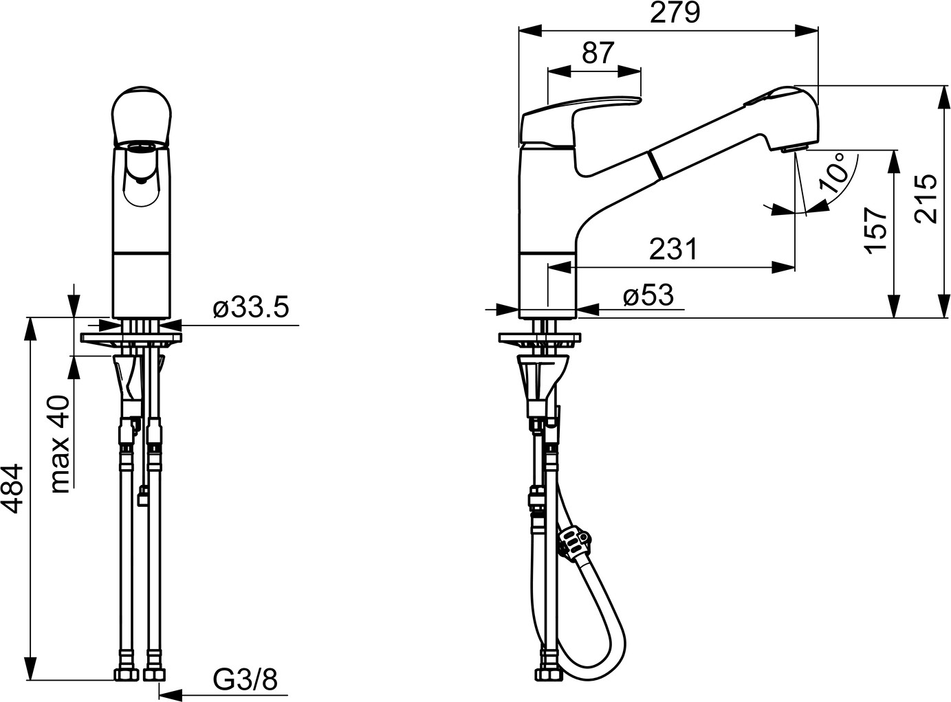 HANSA Spültisch-Einhebelmischer HANSAPINTO Ausziehbrause, 2-strahlig, schwenkbar, Ausladung 231 mm, chrom