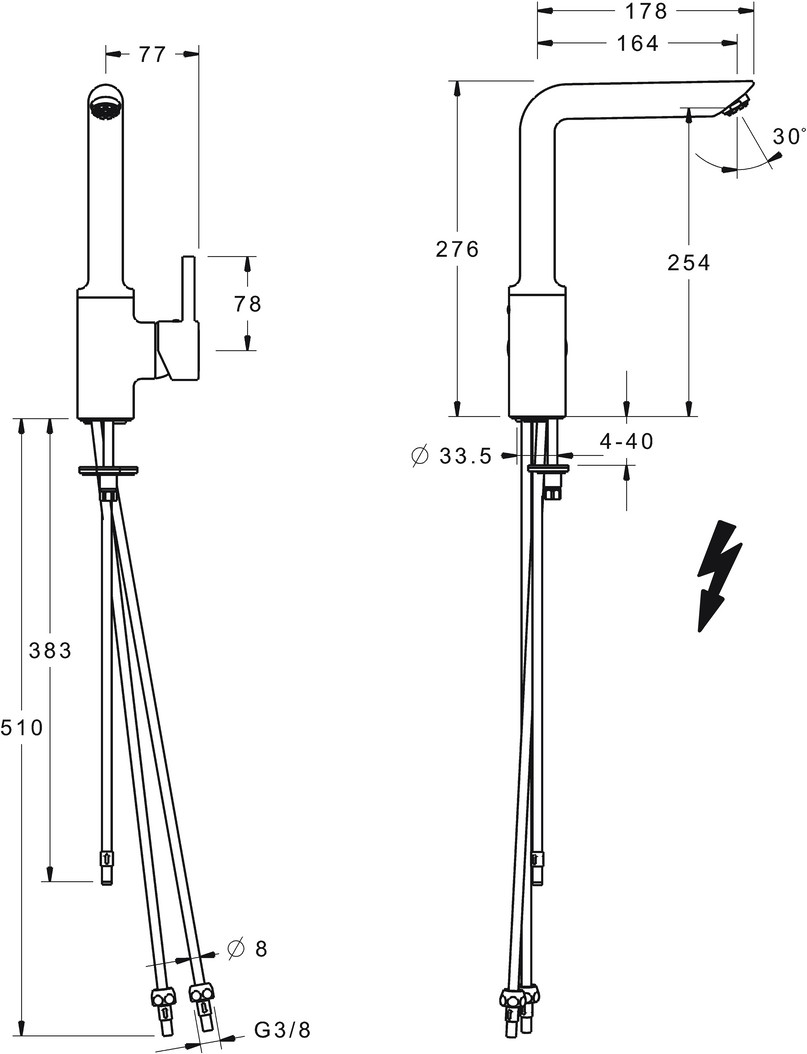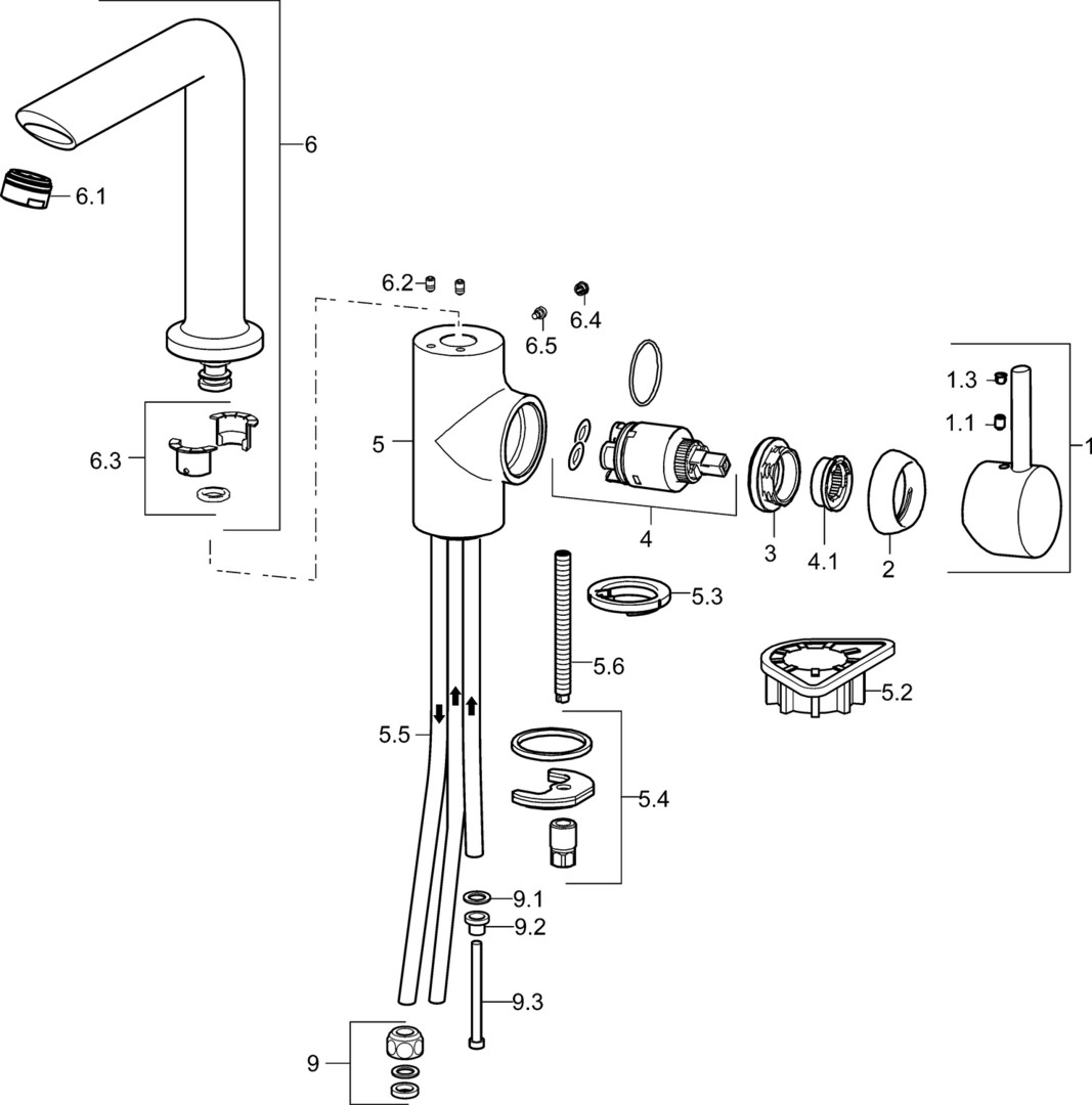 DN 15, Niederdruck, für offene Heißwasserbereiter, Heißwasserversorgung max. 80 °C, Ø 8 mm, Armaturenkörper aus entzinkungsbeständigem Messing (DZR), Rapid-Montagesystem, Hebel mit W+K-Kennzeichnung, Temperaturbegrenzer, Heißwassersperre einstellbar, Anschluss über Kupferrohre, Ø 3.5 classic Steuerpatrone mit keramischen Dichtscheiben zur Wassermengen- und Temperatureinstellung, Schwenkbereich des Auslaufs 150° (360°), Anschlag herausnehmbar, Cascade-Strahlregler, kristallklarer Laminarstrahl