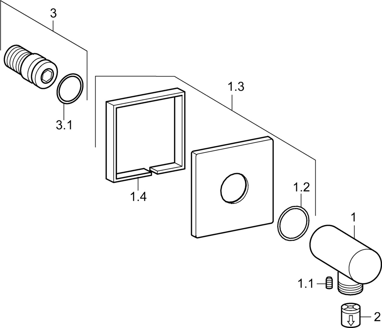 Heißwasserversorgung max. 80°C, Arbeitsdruck 0,5-10 bar, Anschlussgröße G1/2, Sicherungseinrichtung (EN1717) EB, eigensicher gegen Rückfießen im häuslichen Gebrauch (nach DIN EN 1717), Rückfussverhinderer, Rosette eckig, direkter Anschluss, Wandanschlussbogen
