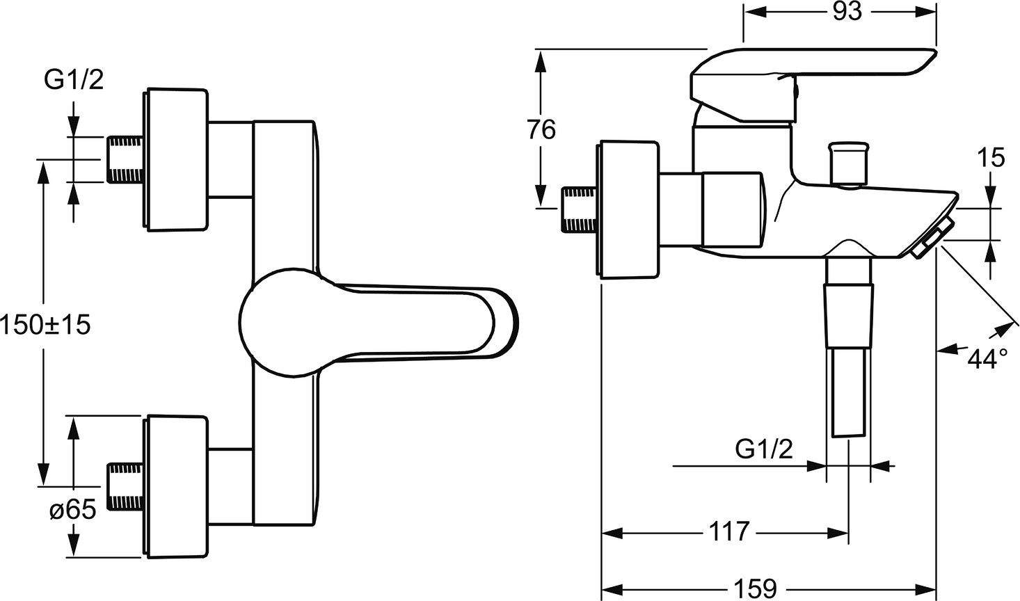 HANSA Wannen-Einhebelmischer HANSAVANTIS Style AP, S-Anschlüsse, Ausladung 159mm, Hebel, chrom HA52442173