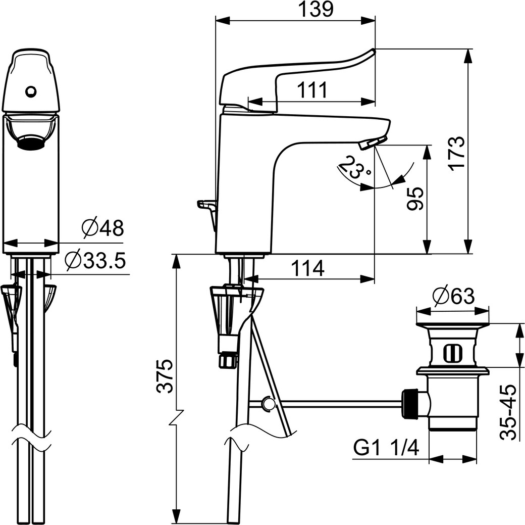 Standmontage (1-Loch), DN 15, Heißwasserversorgung max. +80°C, Arbeitsdruck 0.5 - 10 bar, Durchfluss bei 3 bar: 12.42 l/min, Ausladung 114 mm, Sicherungseinrichtung (EN1717) AA, Geräuschklasse I (ISO 3822), Material aus Messing, DVGW: DW-6506DL0556, KIWA: K6116/08, EPD: S-P-06391, ABP: P-IX 38881/IA, Armaturenkörper aus entzinkungsbeständigem Messing (DZR), Wasserwege ohne Nickelbeschichtung, System für sichere und schnelle Montage, Ø 4.0 Steuerpatrone mit keramischen Dichtscheiben zur Wassermengen- und Temperatureinstellung, kristallklarer Laminarstrahl, Ablaufgarnitur mit Zugstange, Anschluss über Kupferrohre, Temperaturbegrenzer, Heißwassersperre einstellbar (im Lieferumfang enthalten), Bedienungshebel lang, Hebel mit W+K Kennzeichnung, Einhandbedienhebel/Griff, feststehender Auslauf