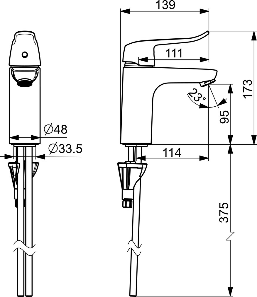 Standmontage (1-Loch), DN 15, Heißwasserversorgung max. +80°C, Arbeitsdruck 0.5 - 10 bar, Durchfluss bei 3 bar: 12.42 l/min, Anschlussgröße Ø 10 mm, Ausladung 114 mm, Sicherungseinrichtung (EN1717) AA, Geräuschklasse I (ISO 3822), Material aus Messing, DVGW: DW-6506DL0556, KIWA: K6116/08, ABP: P-IX 38881/IA, Armaturenkörper aus entzinkungsbeständigem Messing, (DZR), Wasserwege ohne Nickelbeschichtung, System für sichere und schnelle Montage, feststehender Auslauf, Ø 4.0 Steuerpatrone mit keramischen Dichtscheiben zur Wassermengen- und Temperatureinstellung, ohne Ablaufgarnitur, ohne Zugstangenbohrung, kristallklarer Laminarstrahl, Temperaturbegrenzer, Heißwassersperre einstellbar (im Lieferumfang enthalten), Bedienungshebel lang, Hebel mit W+K Kennzeichnung, Einhandbedienhebel/Griff, Anschluss über Kupferrohre