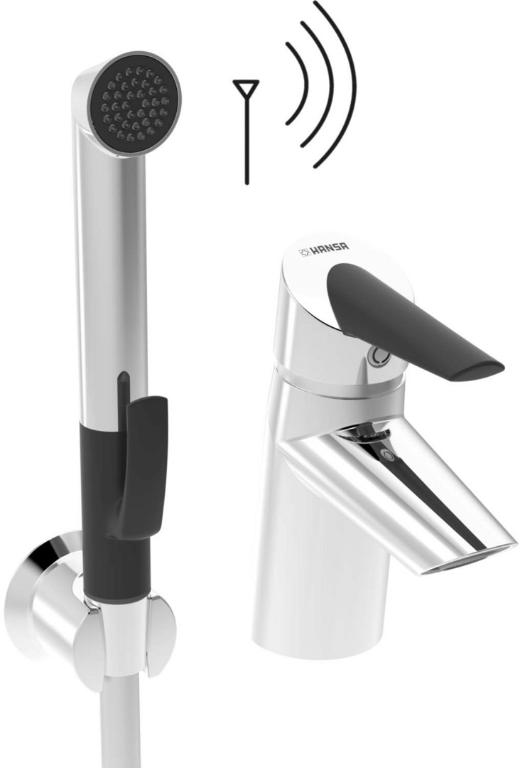 HANSA Waschtisch-Einhebelmischer HANSAFIT Funktions-Handbrause mit Batteriebetrieb, Ausladung 98 mm, chrom