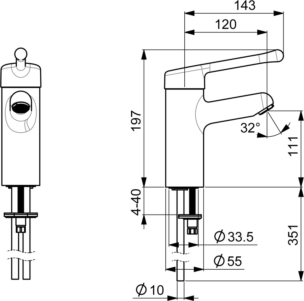 Standmontage (1-Loch), DN15, Heißwasserversorgung: max. +80°C, Arbeitsdruck 0.5 - 10 bar, Durchfluss bei 3 bar: 12 l/min, Anschlussgröße Ø 10 mm, Ausladung 120 mm, Sicherungseinrichtung (EN1717) AA, Geräuschklasse I (ISO 3822), Material aus Messing, DVGW: NW-6506CR0028 EPD: S-P-06391, Wasserwege ohne Nickelbeschichtung, Messing in Trinkwasserkontakt enthält weniger als 0,3% Blei, Armaturenkörper aus entzinkungsbeständigem Messing (DZR), Rapid-Montagesystem, Ø 4.8 classic Steuerpatrone mit keramischen Dichtscheiben zur Wassermengen- und Temperatureinstellung, ohne Ablaufgarnitur, ohne Zugstangenbohrung, kristallklarer Laminarstrahl, feststehender Auslauf, Temperaturbegrenzer, Heißwassersperre einstellbar (im Lieferumfang enthalten), Bedienungshebel lang, Hebel mit W+KKennzeichnung, Einhandbedienhebel/Griff, Anschluss über Kupferrohre