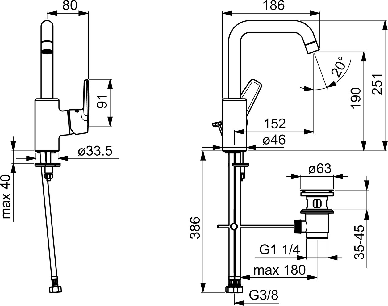 DN 15, Heißwasserversorgung max. 80°C, Arbeitsdruck 0,5-10 bar, Durchfluss bei 3 bar (mit Regler) 6 l/min, Anschlussgröße G3/8, Schwenkbereich 120° (60° / 0°), Ausladung 152 mm, Sicherungseinrichtung (EN1717) AA, Geräuschklasse I (ISO3822), Material Messing, Ø 3,5 classic Steuerpatrone mit keramischen Dichtscheiben zur Wassermengen- und Temperatureinstellung, schwenkbarer Auslauf, Anschlag herausnehmbar, Temperaturbegrenzer, Heißwassersperre einstellbar (im Lieferumfang enthalten), konstante Durchfussleistung unabhängig vom Fließdruck, Ablaufgarnitur mit Zugstange, Armaturenkörper aus entzinkungsbeständigem Messing (DZR), Rapid-Montagesystem, Hebel mit W+K-Kennzeichnung, Einhandbedienhebel/Griff, Anschluss über fexible Druckschläuche