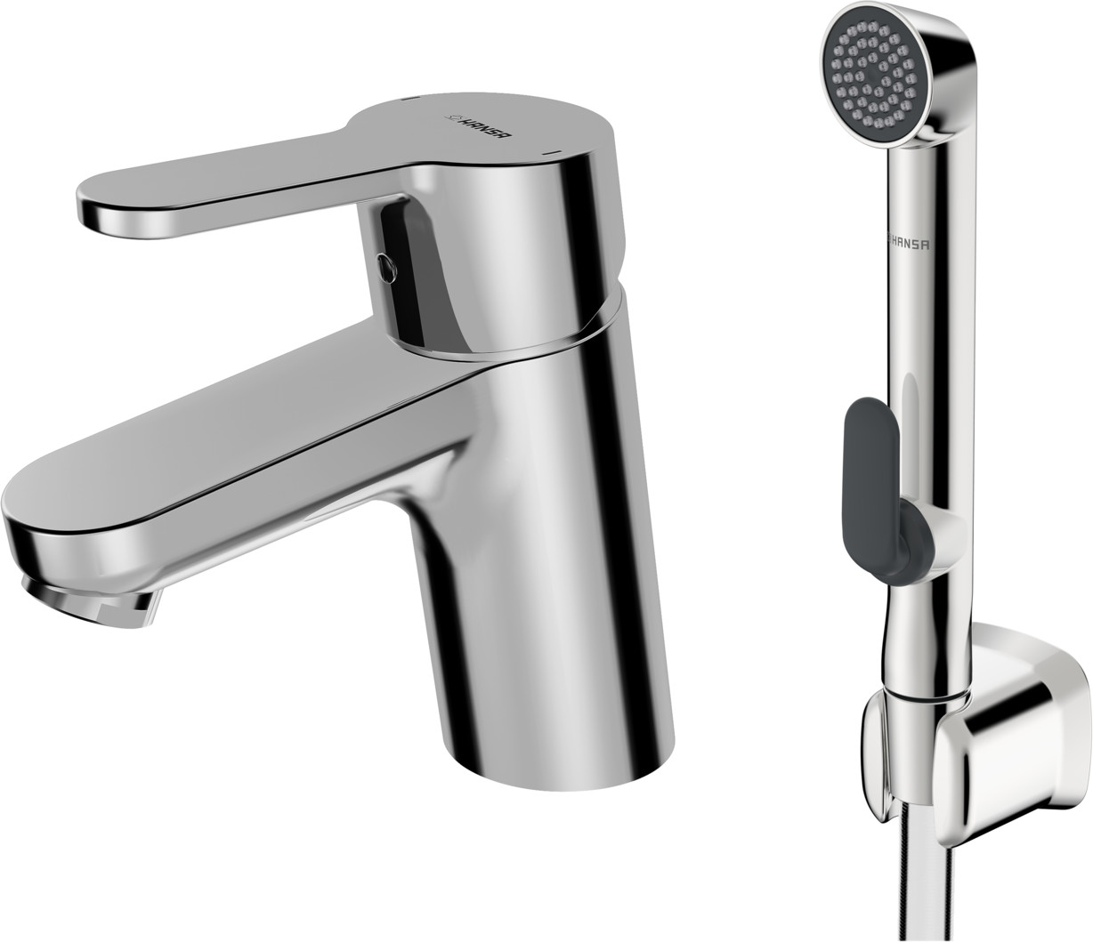 HANSA Waschtisch-Einhebelmischer HANSAPRIMO mit Funktionsbrause, ohne Ablaufgarnitur, Ausladung 107mm, chrom