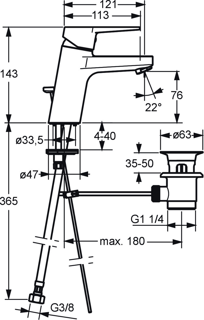 DN 15, Durchflussmenge 6 l/min, gemessen bei 3 bar Fließdruck, Heißwasserversorgung max. 80 °C, Armaturenkörper aus entzinkungsbeständigem Messing (DZR), Rapid-Montagesystem, Hebel mit W+K-Kennzeichnung, Temperaturbegrenzer, Heißwassersperre einstellbar, Ablaufgarnitur mit Zugstange, Anschluss über flexible Druckschläuche G 3/8, Ø 3.5 classic Steuerpatrone mit keramischen Dichtscheiben zur Wassermengen- und Temperatureinstellung, feststehender Auslauf, Strahlregler PCA konstante Durchflussleistung unabhängig vom Fließdruck